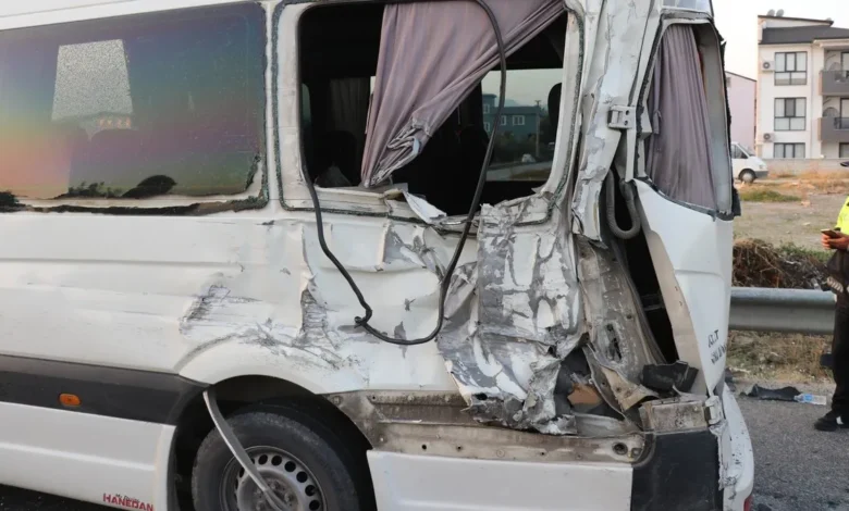 Denizli çevreyolunda servis minibüsüne kamyon çarptı: Sürücünün babası hayatını kaybetti!