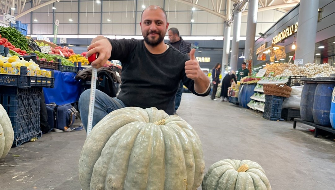 Sivas‘ta bir çiftçi, bahçesinde devasa bir bal kabağı yetiştirdi. Bal kabağını satmak için tezgahına getiren esnaf Ferhat Çobanoğlu, gözlerine inanamadı.