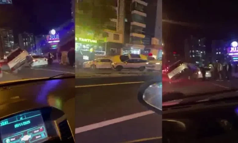 Diyarbakır’da ilginç kaza kamerada: Duramadı başka bir aracın tepesine çıktı!