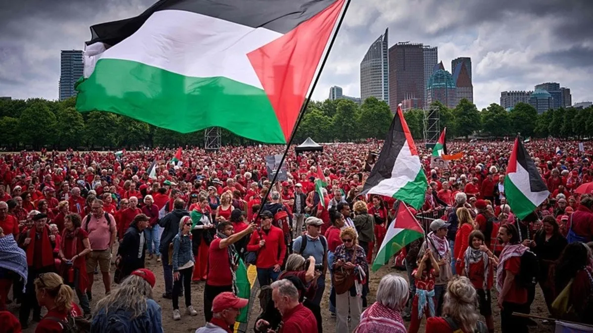 Siyaset, sanat, spor, müzik ve sağlık gibi hemen her alandaki uluslararası zirve, festival, anma, yarış veya sergi gibi etkinlik ve toplantılara Gazze soykırımına yönelik gösterilen tepki ve kınamalar damga vuruyor. İsrail’in Gazze Şeridi’ne yönelik devam eden saldırıları ve 15 Mayıs 19148’deki Nekbe’nin 77 yılını protesto gösterileri beşinci gününde de dünyanın dört bir yanında aralıksız devam etti. Önceki gün İsviçre’nin Basel kentinde İsrail’in 2025 Eurovision Şarkı Yarışması’na katılması ve Gazze’de gerçekleştirdiği soykırıma tepki gösteren dünyanın farklı ülkelerindeki yüz milyonlarca insan dün de farklı kıtalarda ve kentlerde protestolarına devam etti. Gösteri yapılan şehirlerden biri de Lahey’di. İsrail’e karşı açılan soykırım davasının görüldüğü Hollanda’nın Lahey kentinde dün kırmızı giyinen on binlerce kişi ellerinde Filistin bayraklarıyla yürüdü, İsrail ve ona destek veren Hollanda hükümeti aleyhinde sloganlar attı. İtalyan ve Avrupa parlamentosunda görev yapan vekiller de Mısır ve Gazze sınırındaki Refah Kapısı’na giderek İsrail’i protesto etti. “Soykırıma son, apartheid rejimine son, açlığa son, ambargoya son, İsrail’i silahlandırmaya son ve işgale son!” yazılı pankartlar taşıyan Avruplaı vekiller, dünyayı bir an önce harekete geçmeye çağırarak sınır kapılarının açılıp yardımların Gazze halkına ulaştırılmasını istedi.