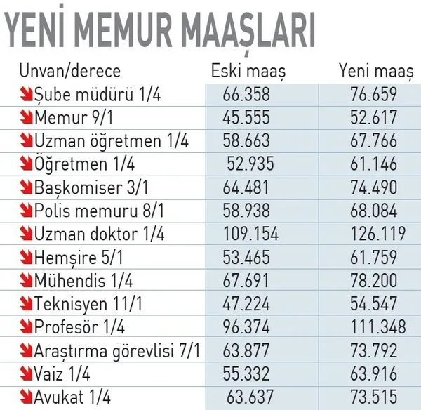 Emekliye % 16.67, memura % 15.57 zam l En düşük memur maaşı 50 bin lirayı geçti
