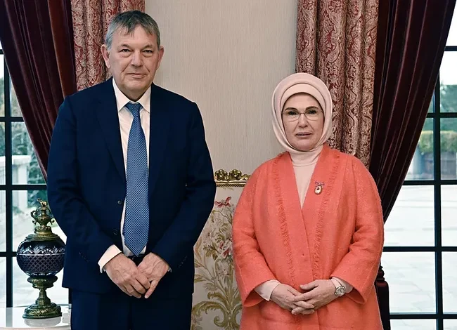 Emine Erdoğan, NSosyal hesabından görüşmeye ilişkin yaptığı paylaşımda, “Birleşmiş Milletler Yakın Doğu’daki Filistin Mültecilerine Yardım ve Bayındırlık Ajansı Genel Komiseri Philippe Lazzarini ile bir araya gelmekten memnuniyet duydum. Filistin halkı için büyük bir özveriyle yürüttükleri çalışmaların, acıları sona erdirecek somut ve kalıcı sonuçlara vesile olmasını temenni ediyorum.” ifadelerini kullandı.
