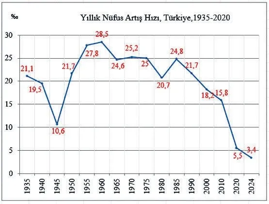 Nüfus planlaması sistemiyle Türklerin doğurganlık hızını düşürdüler. Bu tarihimizdeki en büyük yanlış işlerimizden biridir. Doğurganlık hızımız 1945’te 6.9, 1960’ta 6.38 çocuk iken, 1965’teki nüfus planlaması uygulamasının başlamasından sonra 1978’de 4.3, 1983’te 4, 1993’te 2.7, 2001’de 2.38, 2024’te ise 1.48 çocuğa kadar düştü. Büyük şehirlerde bu durum 1’e kadar indi. 2005’ten sonra bu politikadan vazgeçildiyse de doğurganlık hızımızın düşmesi durdurulamadı.