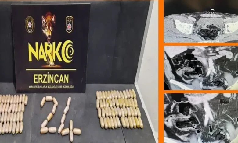 Erzincan İl Emniyet Müdürlüğü Narkotik Suçlarla Mücadele ve İstihbarat Şube Müdürlüğü ekiplerince, terörün finans kaynağı olan kaçakçılık ve uyuşturucu madde ticareti/sevkiyatının önlenmesine yönelik yürütülen çalışmalar kapsamında; şüphe üzerine durdurulan 48 plakalı otobüste yapılan aramada, “yutma yöntemi” kullanarak uluslararası uyuşturucu madde ticareti yaptığı değerlendirilen şahısların mide ve bağırsaklarında; 50 adet kapsül şeklinde toplam ağırlığı 428,08 gram net ağırlığı 363,07 gram gelen eroin maddesi, 59 adet kapsül şeklinde toplam daralı ağırlığı 472,80 gram net ağırlığı 417,62 gram gelen eroin maddesi ele geçirildi.