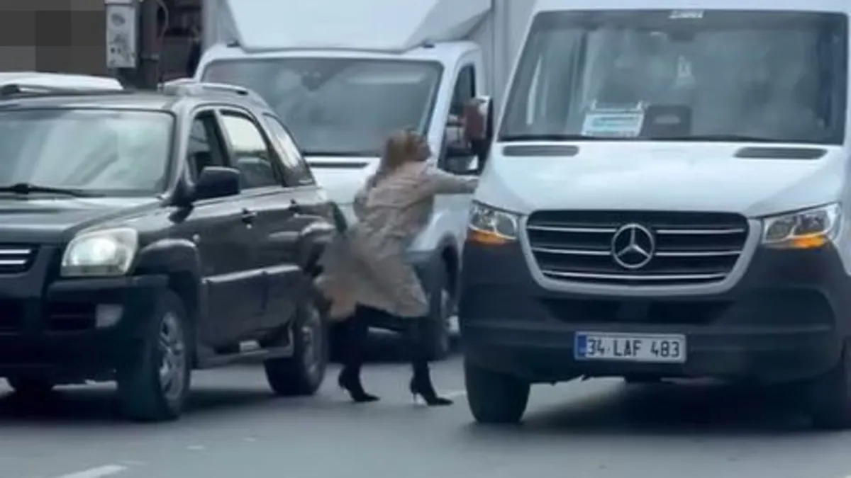 Hakareti duyan kadın sürücü, aracından inerek servis aracındaki kişilere doğru yöneldi ve saldırmaya başladı. Yaşanan gerginlik, çevrede bulunan başka bir kadının araya girerek müdahale etmesiyle büyümeden sona erdi. O anlar çevredeki vatandaşlar tarafından cep telefonu kamerasıyla kaydedilirken, olayda herhangi bir yaralanma yaşanmadığı öğrenildi.