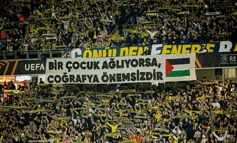 İsrail zulmü altında olan Filistin ve Filistin halkı için bugün de tribünlerden mesaj yollandı. Kale arkası tribünlerin alt bölümünde, İngilizce olarak, “Nehirden denize kadar Filistin özgür olacak” ve “Filistin’deki her çocuk güvenliği, sevgiyi ve geleceği hak ediyor” yazılı pankartlar asıldı.