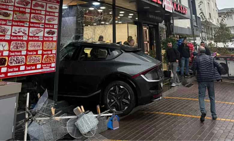 Fren yerine gaza bastı: Dükkanın camından içeri girdi!