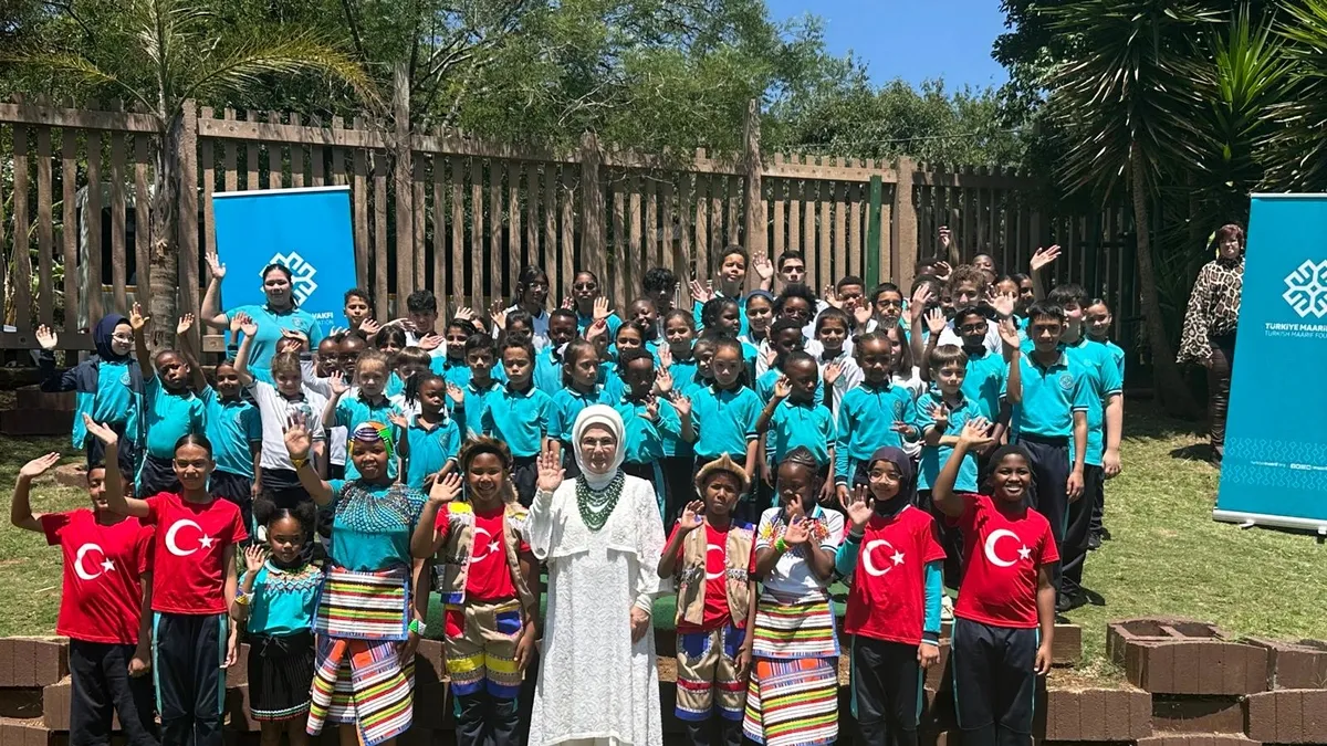 Resmi temaslarda bulunmak üzere Güney Afrika Cumhuriyeti’nin Johannesburg kentinde düzenlenen G20 Liderler Zirvesi’ne katılan Başkan Recep Tayyip Erdoğan’ın eşi Emine Erdoğan Türkiye Maarif Vakfı’nı ziyaret etti. Çocuklarla fotoğraf çektirdi.