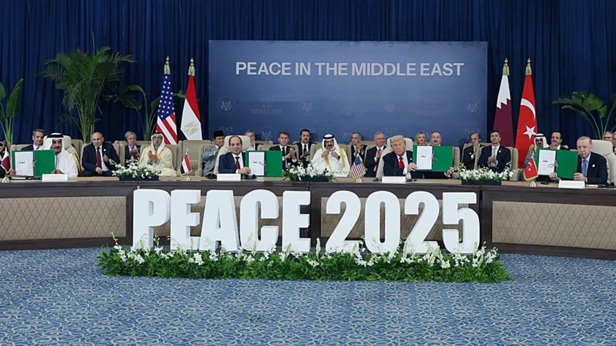 Şarm El-Şeyh’te düzenlenen Barış Zirvesi’nde, Erdoğan, Trump, Mısır Cumhurbaşkanı Abdulfettah es-Sisi ve Katar Emiri Şeyh Temim bin Hamed Al Sani Gazze için “Niyet Belgesi” imzaladı. 35 ülke liderinin katıldığı zirvede, ateşkesin sürdürülmesi ve bölgenin yeniden inşası konusunda ortak bildiri yayımlandı.