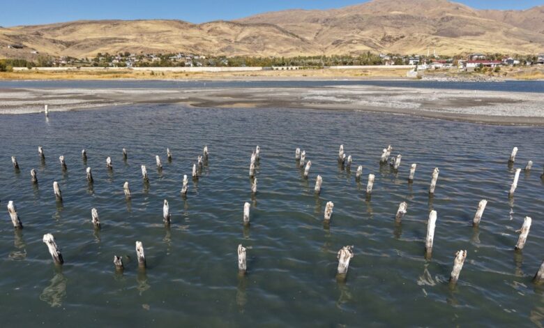 Artık kışa geç girildiğini, yaz mevsiminin ise erken karşılandığını dile getiren Akkuş, bu nedenle Van Gölü’nün çekildiğini ve bu çekilme ile geçmişte iskele olarak kullanılan yapıların ortaya çıktığına şahitlik ettiklerini vurguladı.