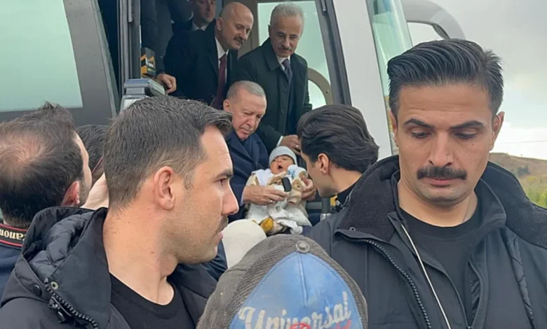 350 bininci deprem konutun anahtar teslimi için Adıyaman’a gelen Başkan Recep Tayyip Erdoğan yolda ailesinin kucağında gördüğü 4 aylık bebeği kucağına alarak sevdi. Başkan Erdoğan, ardından minik Muhammet Fatih Karanfil bebeğe altın taktı. İşte yürekleri ısıtan o anlar…