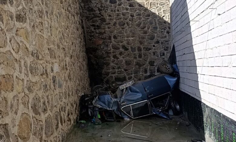Gümüşhane’de otomobil istinat duvarını aşıp otoparka düştü