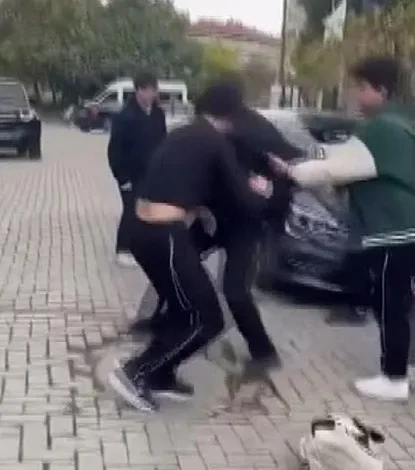 Öğrencilerin okul önünde kavga etmesi ve bir öğrencinin kolundan bıçaklanma anı cep telefonu kamerasına saniye saniye yansıdı.