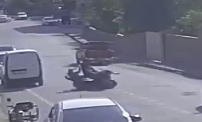 Kaza çevredeki bir iş yerinin güvenlik kamerasınca kaydedildi.