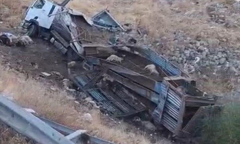 Kazada iki kişi yaralanırken kamyonda bulunan çok sayıda küçükbaş hayvan öldü.