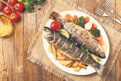YAPILIŞI: Fırın tepsisine yağlı kağıt koyun. Üzerine halka halka kesilmiş soğanları, halka halka kesilmiş havucu ve halka halka kesilmiş domatesleri dizin. Sebzelerin üzerine zeytinyağının yarısını dökün. Sebzelerin üzerine balığı koyun, üzerine kalan zeytinyağını dökün ve tuz serpin. Önceden ısıtılmış 200 derece fırında 30 dakika pişirip servis edin.