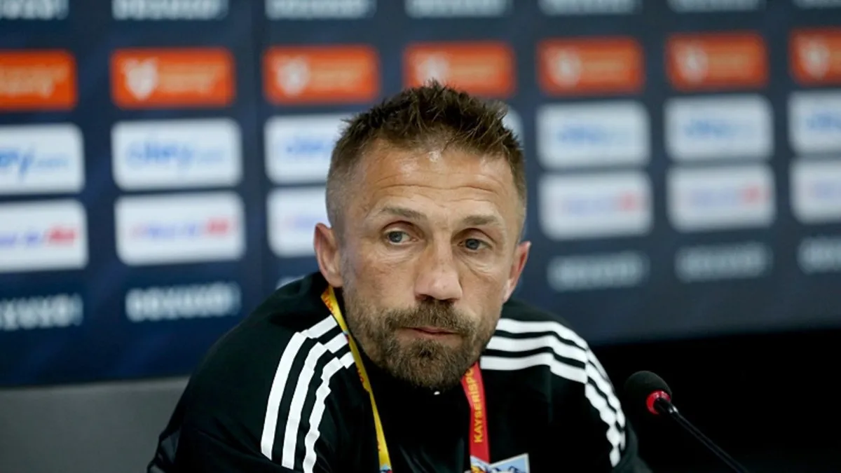 Kayserispor’un Teknik Direktörü Radomir Djalovic’in maç sonu kırmızı kart görmesi nedeniyle basın toplantısına yardımcı antrenör Igor Cagaji katıldı.