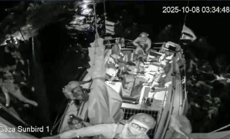 İsrail tarafından uluslararası sularda, Gazze’ye insani yardım götürmek üzere yola çıkan Özgürlük Filosu’nda yer alan Vicdan Gemisi’ne düzenlenen saldırıda alıkonulan aktivistler tahliye ediliyor.