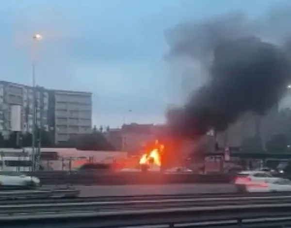 İstanbul Cevizlibağ’da iş makinesi alev alev yandı