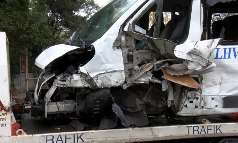 İstanbul Sarıyer’de yağan yağmur kazaya sebep oldu: Servis minibüsü trafik levhasına çarptı!