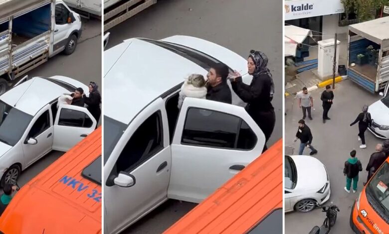İstanbul’da bir trafik magandası, araçtan indirdiği kadına saldırdı.