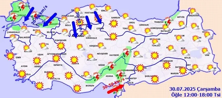 Adil Tek, “Yüksek sıcaklıklar bugünlerde yine sürüyor. Geçtiğimiz haftadan bu yana ayın 19’undan bu yana devam eden yüksek sıcaklıklar var. Ayın 22’sinde daha da yükselmeye başladı ve ayın 26’sında yani 25-26’sında geçtiğimiz Cuma ve Cumartesi ülkenin en yüksek sıcaklıkları ölçüldü bu zamana kadarki. O gün en pik değerlerdi. O günden itibaren birkaç derecelik düşüşler var ama yüksek sıcaklıklar yine sürüyor. Geçtiğimiz hafta Cuma günü ölçülen ayın 25′ inde ölçülen 50.5 derecelik sıcaklık var; Şırnak Silopi’ de ölçüldü. Ölçülen değer bu zamana kadar ülkemizde ölçülmüş en yüksek sıcaklık değeriydi. Aynı gün yine aynı ilimiz içerisinde Cizre’de de 50 dereceye yaklaşan sıcaklıklar vardı. Daha sonra sıcaklıklarda 1-2 derecelik düşüşler yaşandı. İç bölgelerde özellikle başkent Ankara’da Konya, Eskişehir ve İç Anadolu’daki diğer illerimizde bu hafta, dün ve bugün önümüzdeki günlerde 40 derecenin üzerine çıkan sıcaklıklar var. Kuzeyden gelecek bir serin hava var ama sadece kuzey ve kuzeybatı bölgelerimizi bir parça etkileyecek. Güneydeki o sıcak hava akışı, yine devam ediyor. Bunun sebebi de zaten Afrika üzerinde bulunan ve daha doğrusu biraz daha batısında bulunan azor yüksek basıncının baskısıyla birlikte Afrika üzerindeki sıcağı bize doğru akıtması, bu sebepten yüksek sıcaklıklar meydana geliyor. Ayrıca kuzeyimizde bulunan bir blokaj var; jet rüzgarları diye adlandırdığımız. O blokaj da kuzeyden gelecek serin havanın gelişini önlüyor. Önümüzdeki gün de yani yarından itibaren kuzeyden hafif Balkanlar üzerinden bir serin hava girişi var” dedi.