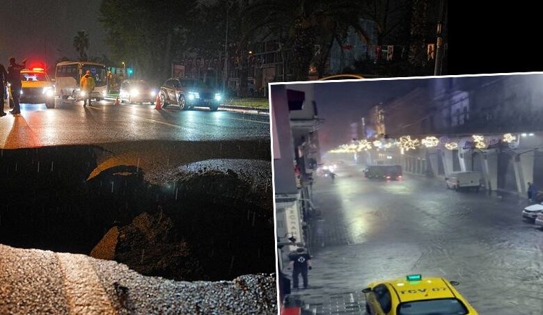 Yağış nedeniyle Fatih’te Adnan Menderes Bulvarı (Vatan Caddesi) üzerinde 3 metre derinliğinde çökme meydana geldi.