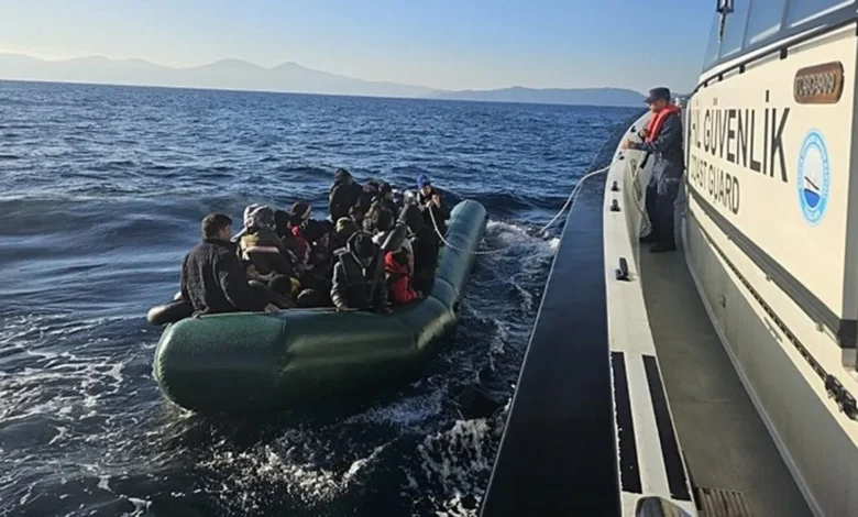 Sahil Güvenlik ekiplerince durdurulan hareketli lastik bottaki 3’ü çocuk 34 düzensiz göçmen yakalandı.