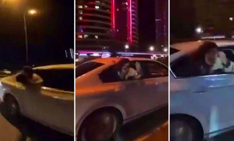 İzmir‘de bir kişinin arabanın camından sarkarak yardım istediği görüntüler sosyal medyada gündem oldu.