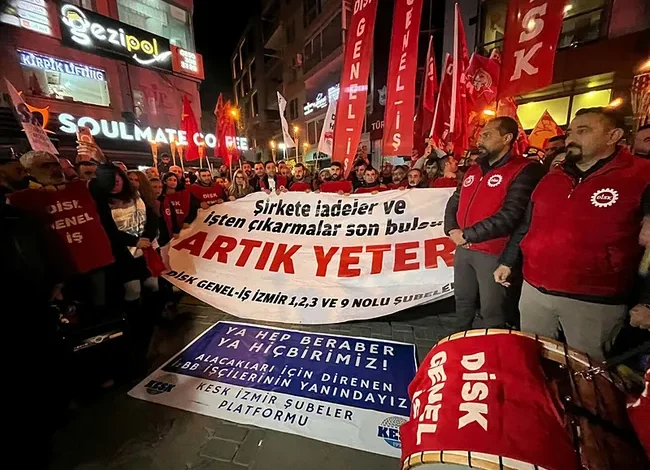 Genel-İş Sendikası üyesi işçiler ve sendika temsilcileri, Kültürpark’ın Lozan Kapısı önünde bir araya geldi. Burada pankart açan ve ellerinde meşalelerle yürüyen grup, davul eşliğinde çeşitli sloganlar attı ve Kıbrıs Şehitleri Caddesi’ndeki Türkan Saylan Kültür Merkezi önüne kadar ilerledi.