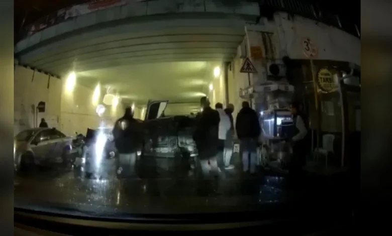 Kağıthane’de otomobil refüje çarptı: Aracın devrildiği anlar kamerada!