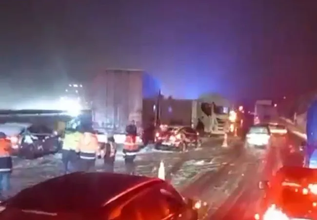 Bolu Dağı’nda etkili olan yoğun kar yağışı nedeniyle TEM Otoyolu Bolu Dağı Tüneli çıkışında 6 aracın karıştığı zincirleme trafik kazası meydana geldi.