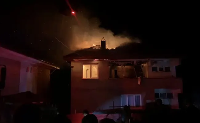 Karabük’te korku dolu anlar! İki katlı evin çatısı alev alev yandı