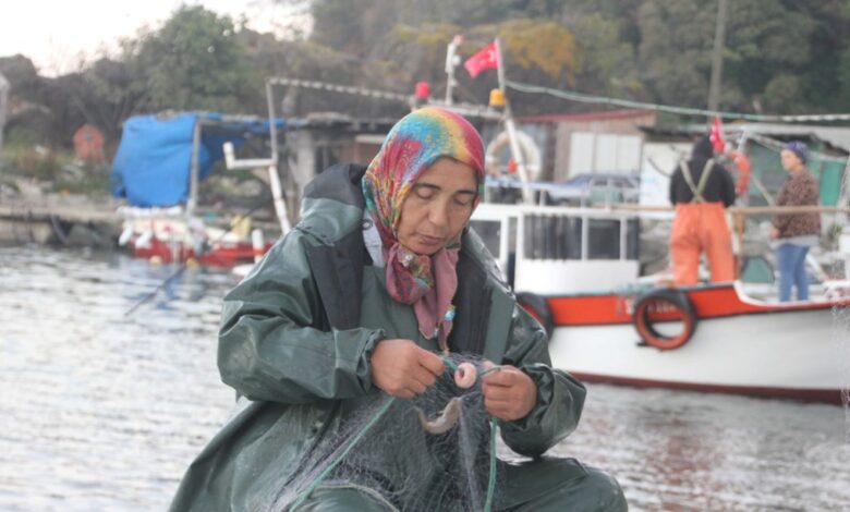 Bahar Demir isimli kadın balıkçı, kendisinin denize açılmasa da kıyıda her gün eşine yardım ettiğini belirterek, “Bizim okula giden çocuklarımız var, onları hazırlayıp saat 06.00 gibi buraya geliyorum. Burada ağ temizliyoruz. Balıkları ağlardan temizliyoruz ve istif alıp, bir sonraki ava hazırlıyoruz. Balıkçılık zor, soğuk havalarda daha da zor. Bazen soğuktan ellerimiz bile tutmuyor ama herkes ekmeğinin peşinde” diye konuştu.