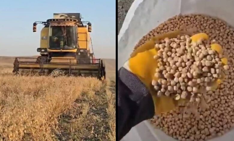 Kars’ta nohut hasadı başladı: Dekar başına 100-150 kilo verim