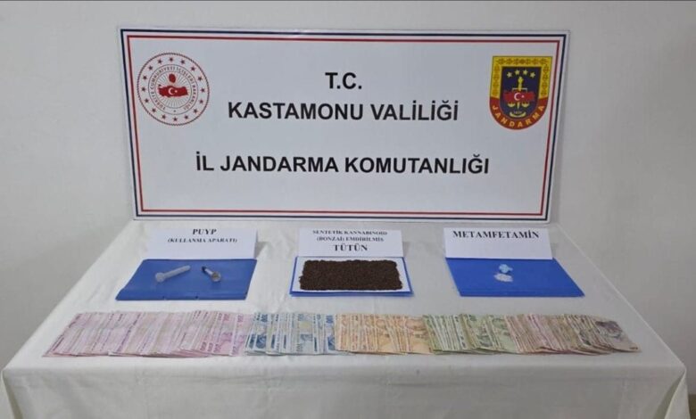Edinilen bilgiye göre, Kastamonu İl Jandarma Komutanlığı ekiplerince uyuşturucu madde imal ve ticareti yapan şahıslara yönelik yürütülen çalışmalar neticesinde, M.Ü.’nün aracında 4 Nisan tarihinde yapılan aramada bir miktar metamfetamin, kannabinoid ve suçtan elde edildiği değerlendirilen 34 bin TL nakit para ele geçirildi.