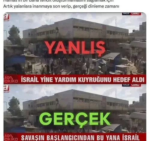 AHaber’in ses getiren yayınları İsrail’i rahatsız etti. İsrail resmi savunma kuvvetleri hesabından AHaber’e yönelik ‘kurgusal’ bir görsel paylaştı. İsrail hesabı paylaşımında, “Medya hikâyeler anlatmayı seçerken İsrail Ordusu sahada harekete geçti İyi görünmek için değil, Hamas’ın bir daha tehdit oluşturmamasını sağlamak için Artık yalanlara inanmaya son verip, gerçeği dinleme zamanı” dedi.