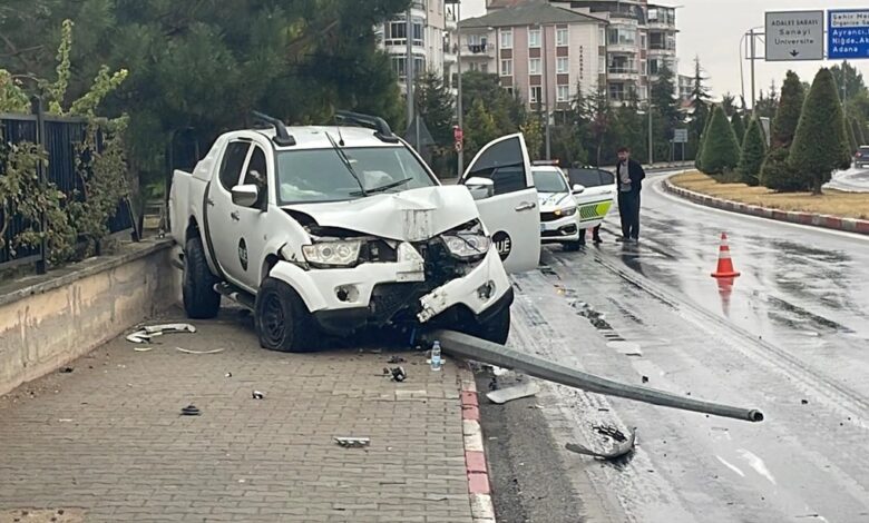 M.Z.Ü.’nün kullandığı pikap, yağmur nedeniyle kayganlaşan yolda kontrolden çıkarak kaldırıma çıktı. Kaldırımdaki aydınlatma direğini deviren pikap daha sonra 82. Yıl Devlet Hastanesi ek binasının duvarına çarparak durabildi.