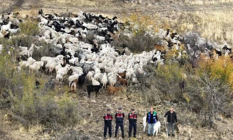 Havanın aydınlanmasının ardından dron ile arazide arama yapan İlçe Jandarma Komutanlığı ekipleri, 6 farklı noktaya dağılmış haldeki sürüyü tespit etti.
