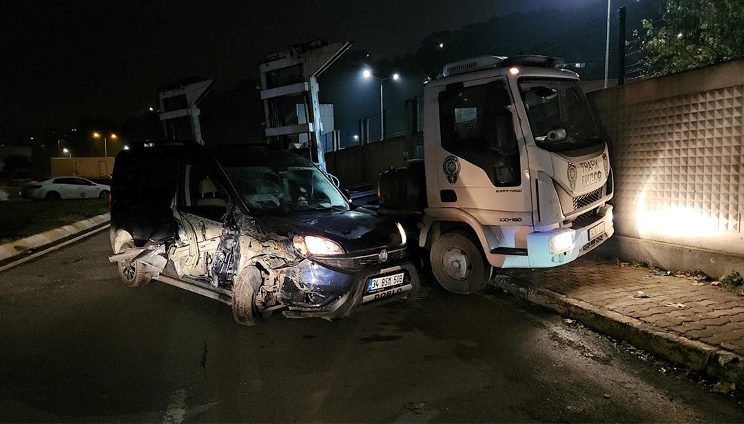 Sarıyer Emirgan mahallesinde sürücüsünün ismi öğrenilemeyen hafif ticari araç, park halindeki tıra çarptı. Kazanın şiddetiyle araçta hasar oluştu.
