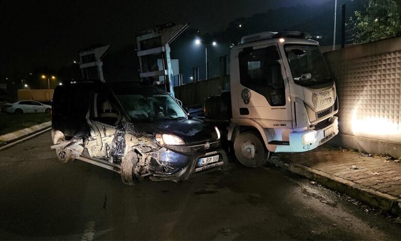 Sarıyer Emirgan mahallesinde sürücüsünün ismi öğrenilemeyen hafif ticari araç, park halindeki tıra çarptı. Kazanın şiddetiyle araçta hasar oluştu.