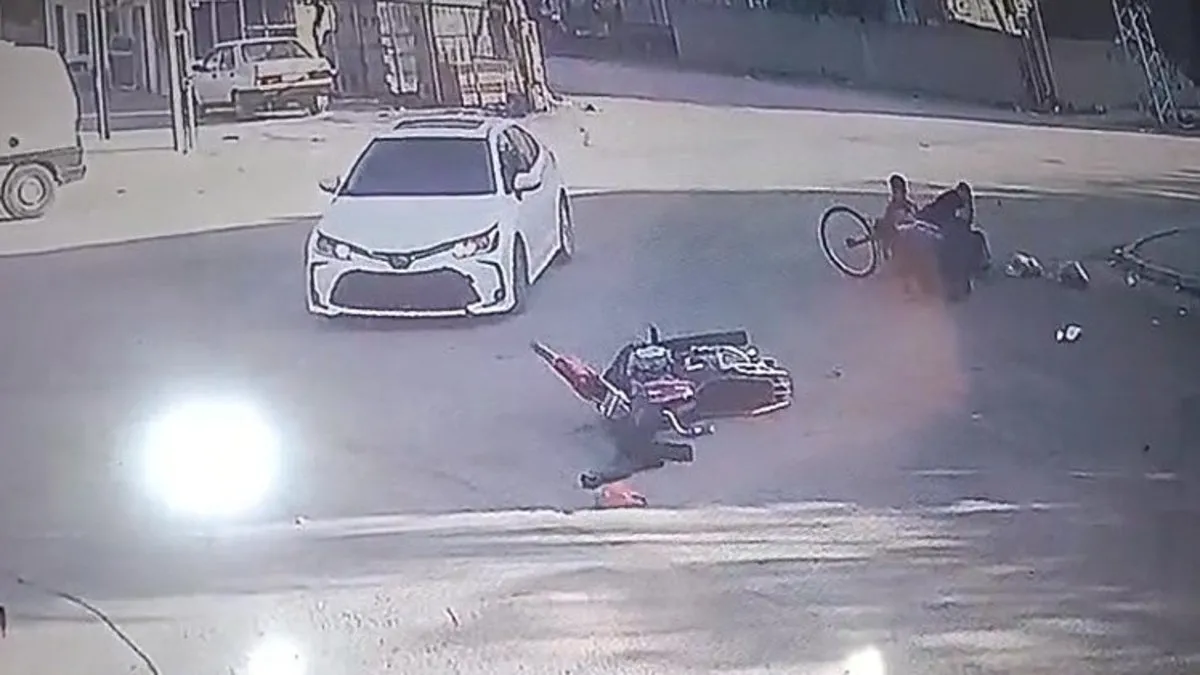 Kaza, Payas ilçesi Yıldırım Beyazıt Mahallesi’nde meydana geldi. Edinilen bilgiye göre, cadde üzerinde dönüş yapmak isteyen otomobil ile karşı yönden gelen motosiklet çarpıştı. Çarpışmanın şiddetiyle kontrolden çıkan motosiklet devrilirken, üzerindeki 2 kişi savruldu. Metrelerce savrulan motosikletin sürücüsü, kaldırımda yürüyen yaşlı bir çiftin üzerine düştü. Anbean güvenlik kamerasına yansıyan kazada, motosikletin üzerindeki 2 şahıs ve kaldırımda yürüyen çift hafif şekilde yaralandı. İhbar üzerine olay yerine polis ve sağlık ekipleri sevk edildi. Yaralılar, sağlık ekiplerince yapılan ilk müdahalenin ardından hastaneye kaldırıldı.