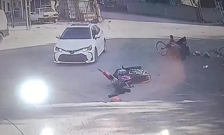 Kazada savrulan motosikletin sürücüsü yaşlı çiftin üzerine uçtu: 4 yaralı