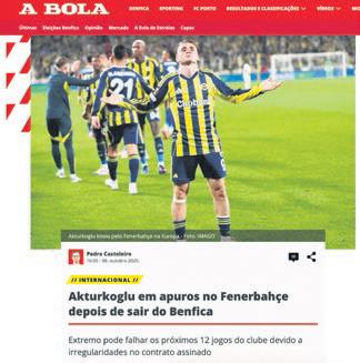 “Kerem’in başı dertte” başlığı ile verilen haberde, “Ekim ayında Türkiye tarafından antrenmanlara çağrılan Aktürkoğlu, F.Bahçe’nin önümüzdeki maçlarını kaçırma riskiyle karşı karşıya ve hatta kulübün 2025’deki son maçını oynayacağı 21 Aralık’a kadar sahalardan uzak kalabilir. Aktürkoğlu, dört UEFA Avrupa Ligi maçının yanı sıra Beşiktaş ve Galatasaray gibi lig maçlarını da kaçıracak” ifadeleri yer aldı.