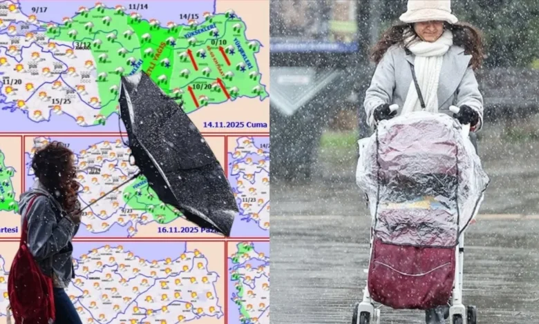 Meteoroloji’den peş peşe uyarılar geldi. Sıcaklıklar bugün itibarıyla düşerken, öğle saatlerinden sonra 1200 metre üzeri bölgelerde karla karışık yağmur ve yer yer kar bekleniyor. 6 il için sarı kodlu alarm verildi. Peki yağışlar hangi bölgelerde şiddetlenecek? Hangi yüksek kesimlerde karla karışık yağmur etkili olacak? İşte 14 Kasım MGM hava durumu raporu…