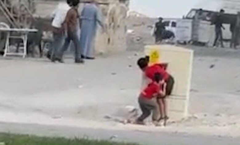 Öte yandan kavga, cep telefonu kamerasıyla görüntülendi. Görüntülerde tarafların birbirine taş ve sopalarla vurduğu ve arada kalan 2 çocuğun, kendilerini korumak için elektrik panosunun arkasına saklandığı görüldü.