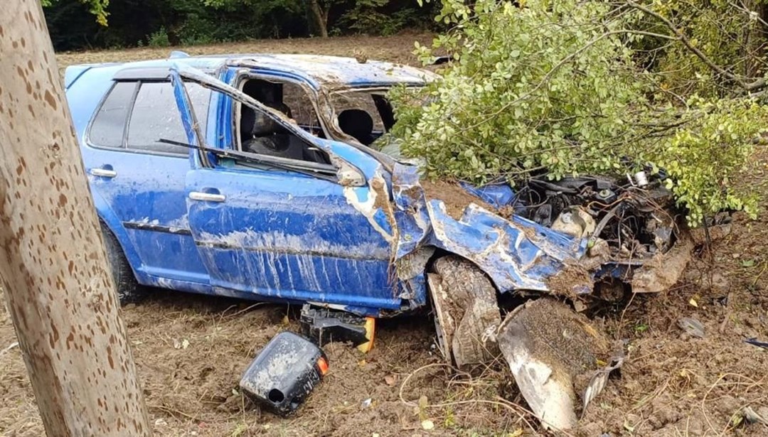 Yoldan çıkan otomobil, yaklaşık 100 metre boyunca tarlada sürüklenerek önüne çıkan ağaçları devirdikten sonra durabildi.
