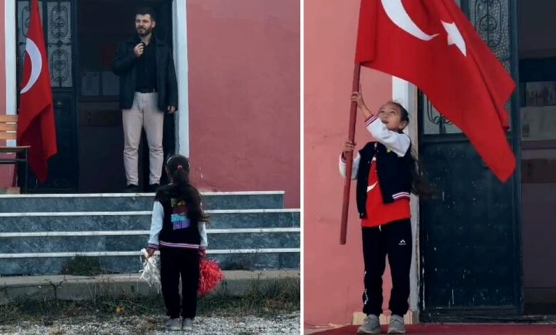 2014 yılından önce belde statüsünde olan mahalledeki okulda, öğretmen Muhammet Bağ ve 3’üncü öğrencisi İlayda Kozlu, Cumhuriyet’in 102’nci yıl dönümünü törenle kutladı.