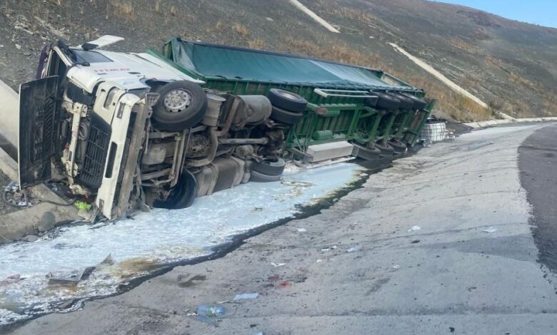 Edinilen bilgiye göre, otoyola giriş yapmak isteyen yabancı plakalı TIR, Kulu Kavşağı girişinde kontrolden çıkarak şarampole devrildi.