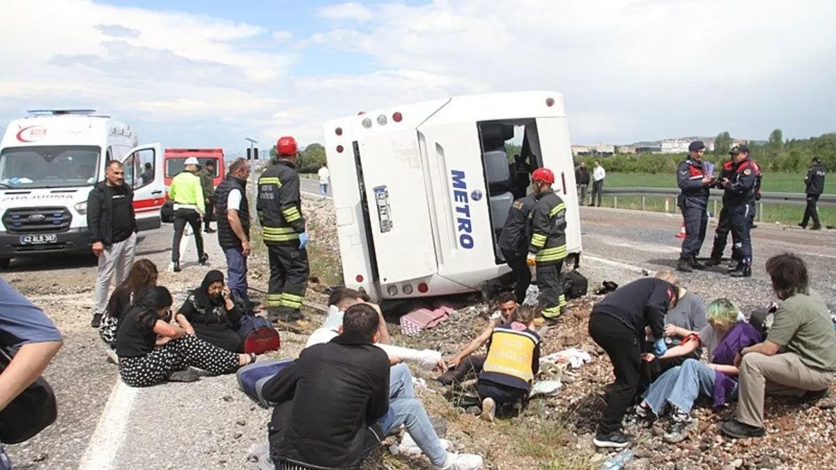 Konya’da yolcu otobüsü devrildi, 13 kişi yaralandı